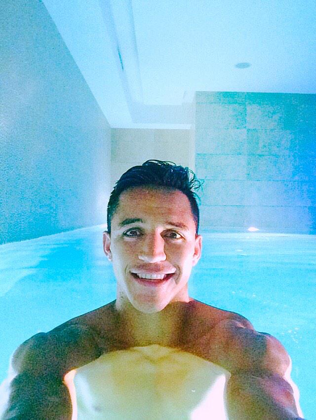The Chilean international shared a rare photo on his Twitter feed last night, showing him relaxing at home with his indoor swimming pool.